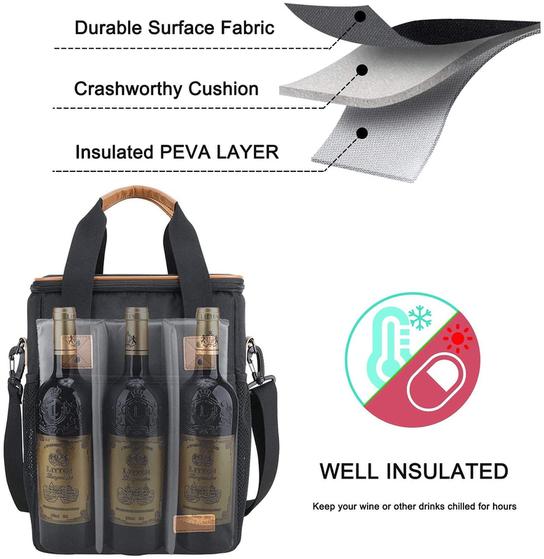 Gemakkelijk te vervoeren Isolatie Wijn Tote Koeler Tote Bag Wijnfles zakken 10X6.3X13"