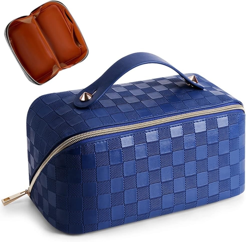 De open flatsmake-upzak is ontworpen om de mond open te maken en 180olay flats waarmee u snel de gewenste items kunt vinden.De alles-cosmetische tas gaat plat open zodat je al je make-up tegelijk kunt zien en dan snel dingen dichtkrampen als je klaar bent om te gaan.