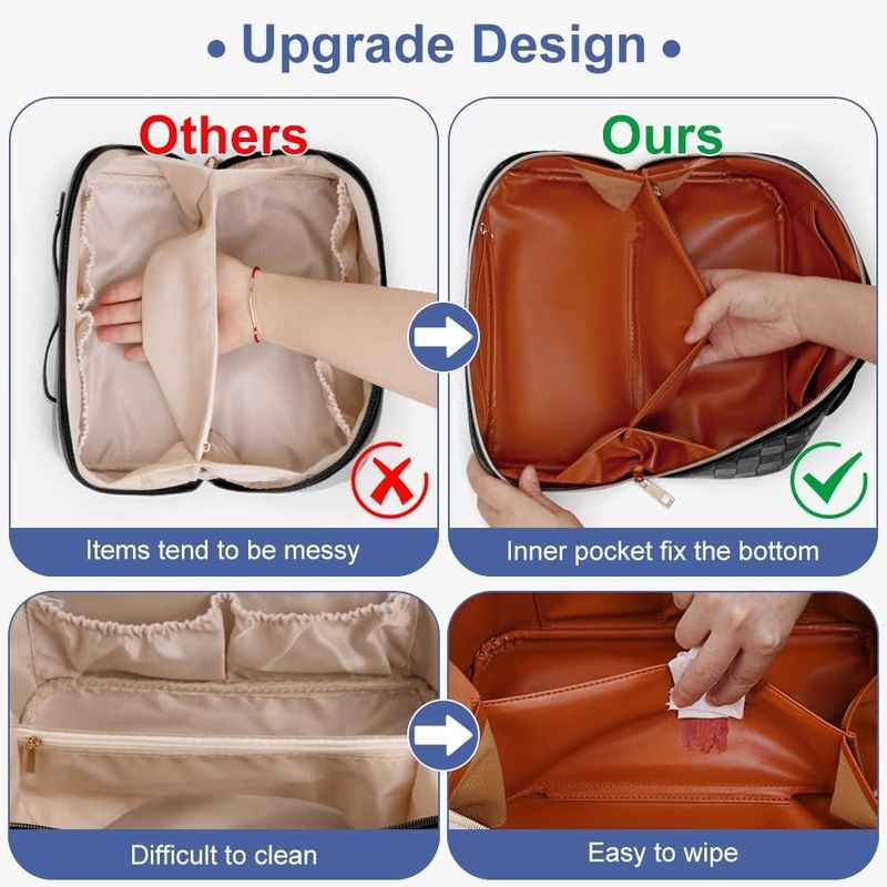Onze gekabelde cosmetische tas is gemaakt van hoogwaardige en dikke PU-leer aan de binnenkant en buitenkant, die zijn vorm kan behouden zonder te instorten en is duurzamer dan vergelijkbare producten.De vlekbestendige lederen voering kan gemakkelijk worden afgeveegd om uw problemen met cosmetische vlekken op te lossen